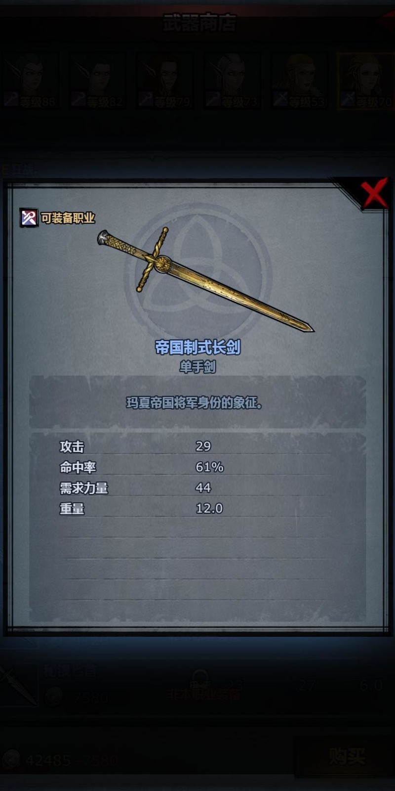 帝国制式长剑:顶级精良,轻便适体,芒果娘钟爱之选。
