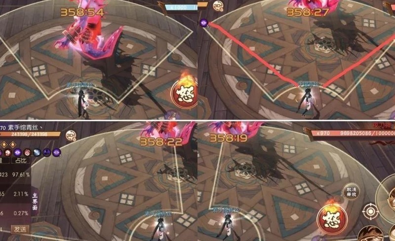 对贺隐来说,分身会继承本体当前的状态,包括暴怒、吃药等增益效果。但触发顺序不同会导致伤害差异:先开启暴怒再释放分身,其伤害高于先分身再暴怒,而两者均远强于不分身或不暴怒的情况。测试中排除了不稳定增益的干扰,每组技能统一使用飞燕、风魔、地炎与炽焰进行对比,结果明确显示出上述伤害排序关系。