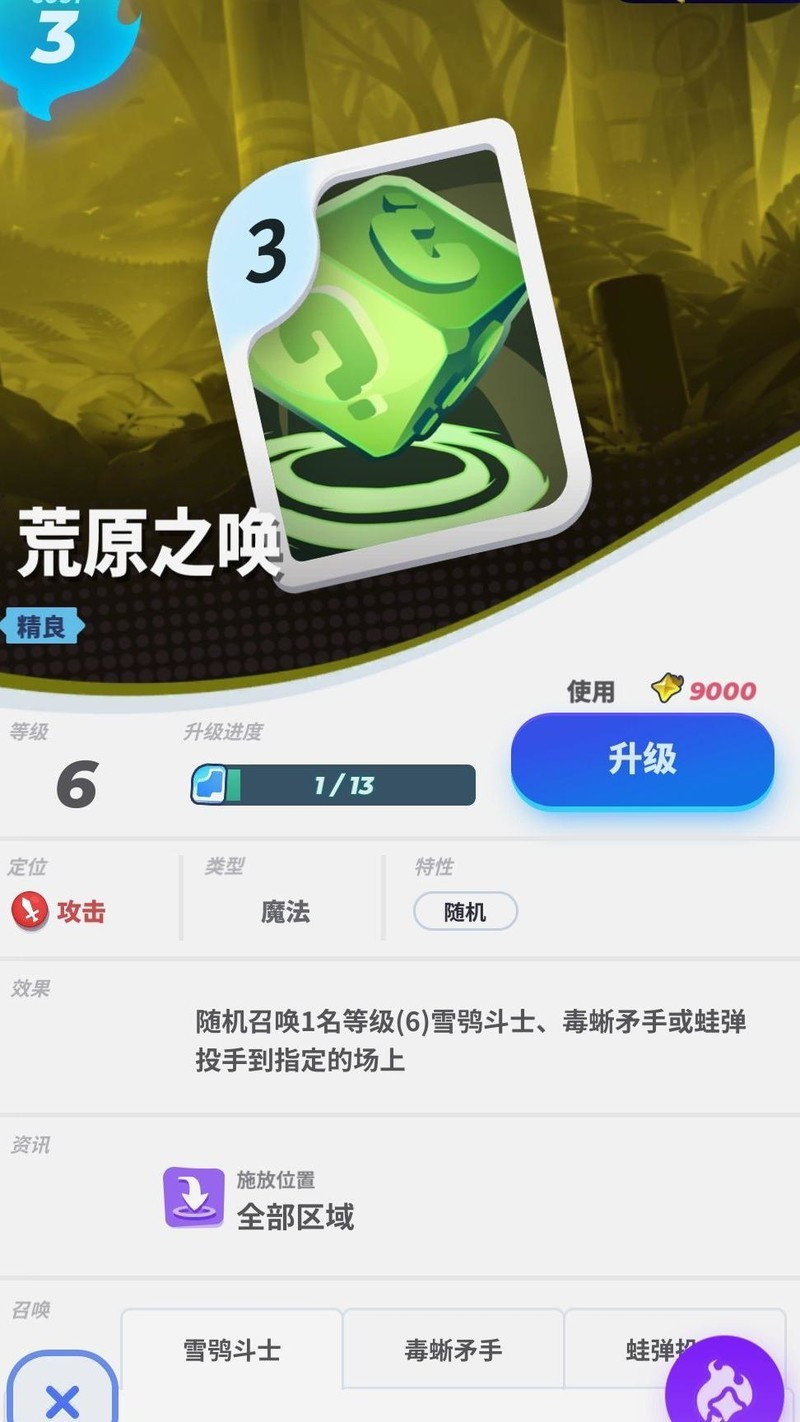 3费技能荒原之唤,可直接在敌方基地周围持续伤害,若前排已推进至敌阵,效果更佳。