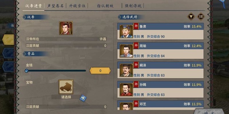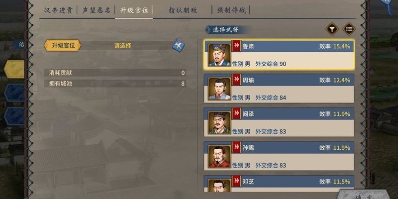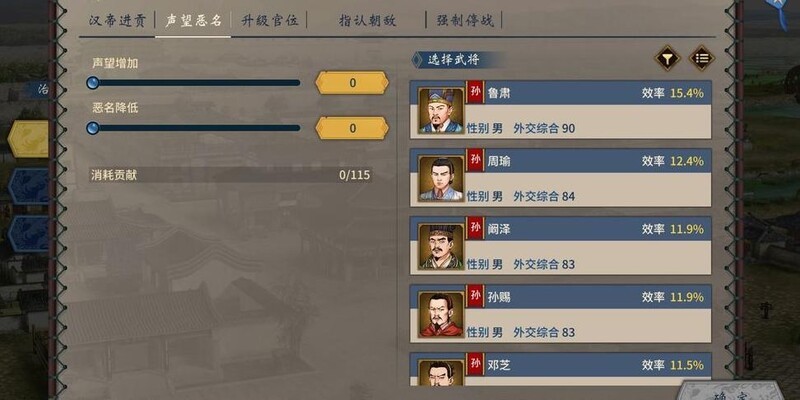 选择更强武将可降低恶名或提升声望,从而减少与进贡相同的贡献消耗。