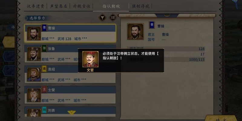 该功能需在拥立汉帝状态下激活,其强度远超指认朝敌,更具压制力与战略优势。