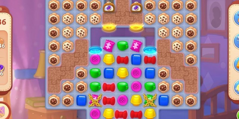 剩余步数需合理规划,优先收集饼干。可使用地雷,或搭配彩虹球与纸飞机生成的超级炸弹,提升清理效率。不推荐使用彩虹球配合火箭筒,因饼干无法穿透障碍,火箭筒一次最多消除两个,效果有限,性价比不高。