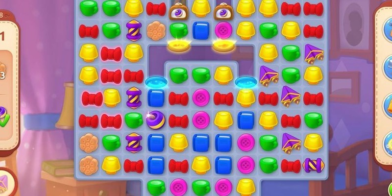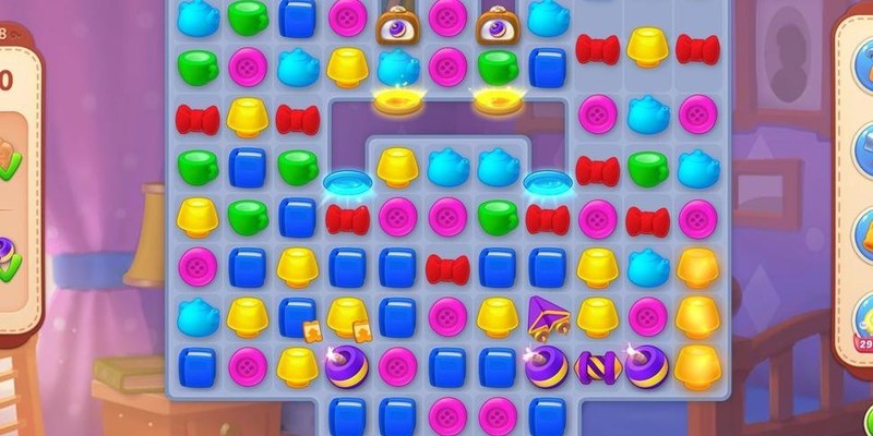 打开拼图需先用小包匹配图块,开启后获取拼图碎片,集齐即可启动拼图。拼图下方藏有三组地雷,需成功组合这三组才能推进。操作时需在蓝色传送门下方消除元素,使地雷下落,再通过清除中间的障碍,让地雷聚拢,最终触发碰撞完成组合,过程需要精准布局与时机把握。