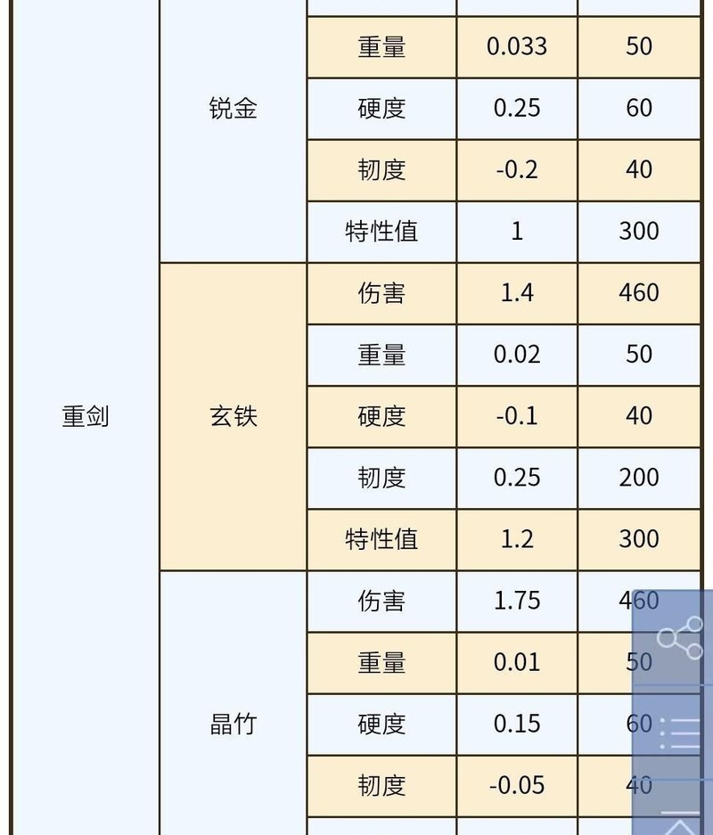无需淬炼,直接重铸为重剑,不计伤害与硬度,韧度达88.842,重量超过16.6。