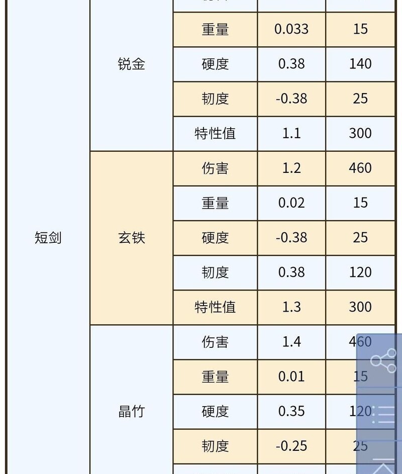 需先将玄铁淬炼五十次,再以晶竹淬火一百九十次,最终实现伤害与硬度双满分,韧度达91.842,重量为19.57,配合先天150臂力可提升攻击速度。