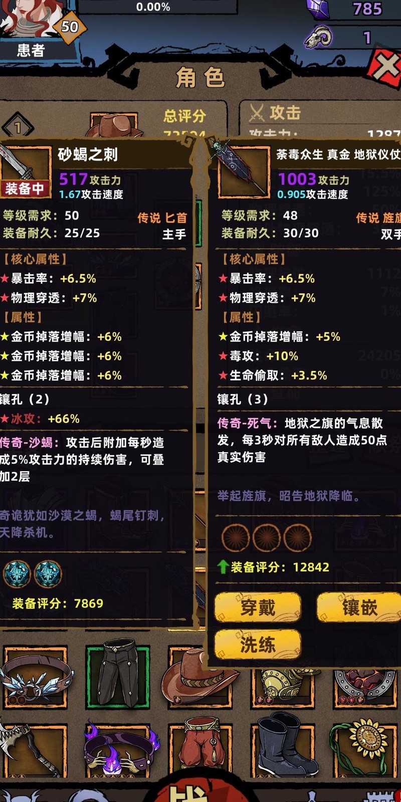 评分高低不仅取决于装备基础属性是否匹配,还与词缀类型有关。例如,一件三条属性均为+6金币掉落的装备评分为5300,另一件三条分别为+7.5暴击、+20攻击、+5金币掉落的装备评分为6300。若角色更依赖金币收益,前者的实际价值可能更高,即便总评分低于后者,整体收益仍可能超过千分之差。