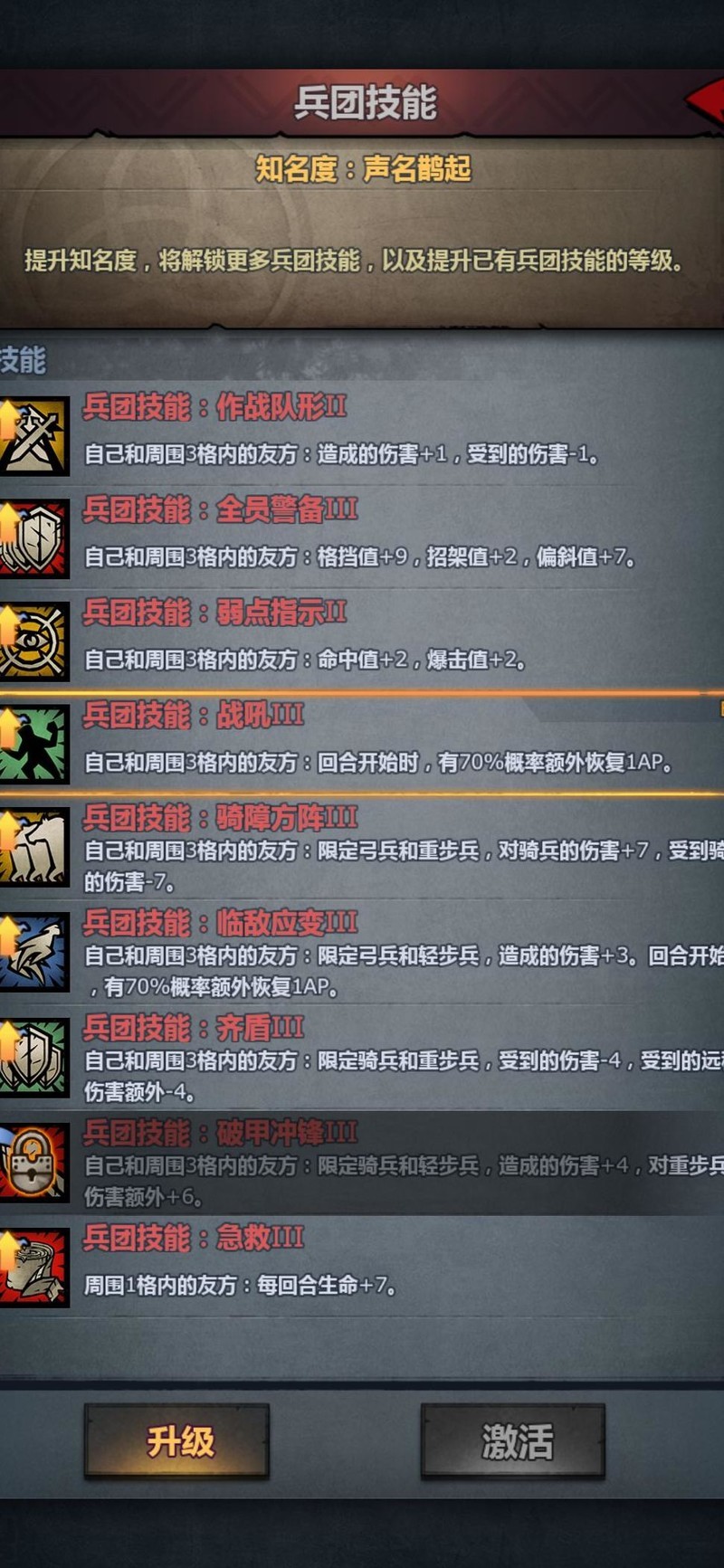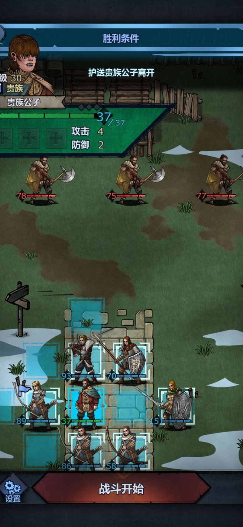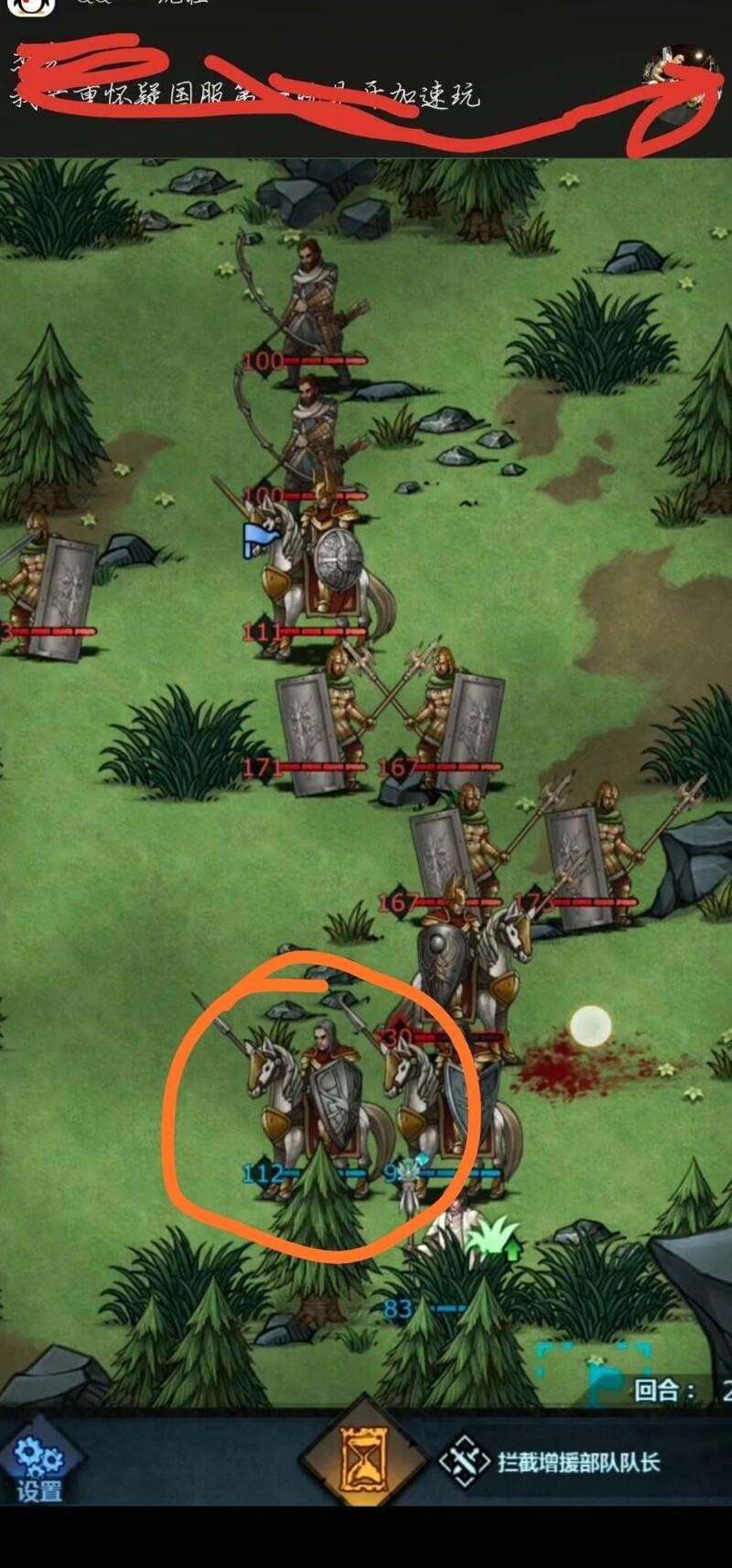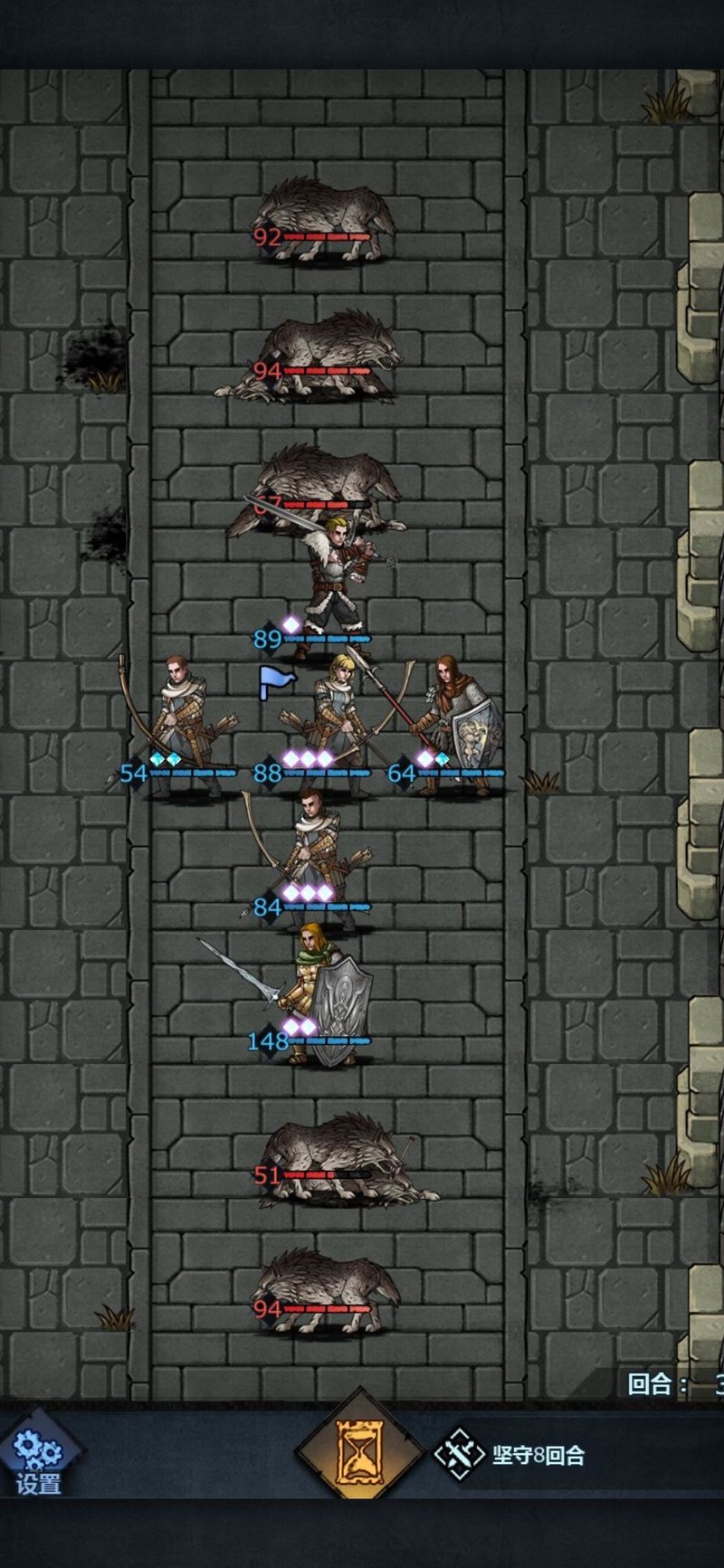 进入第三回合,对方已能攻击我方禁卫。实际上此关只需三名长弓手即可完成,其余角色仅为辅助。设置禁卫是为防止新手因输出不足导致无法击杀敌人,预留容错空间。