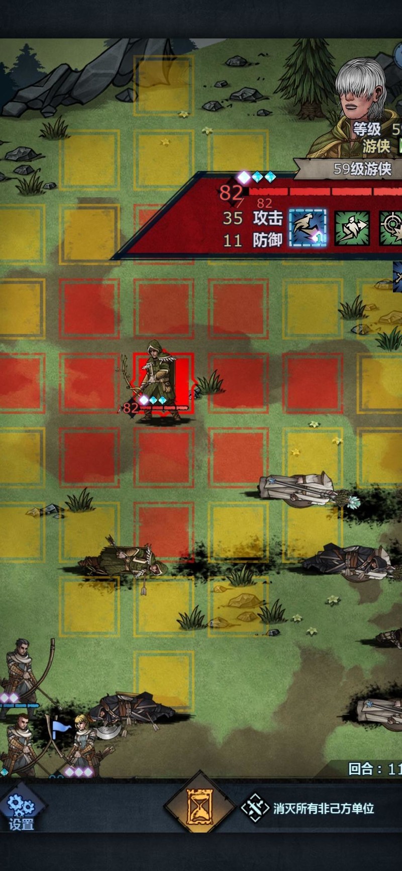 首回合我们主动前移至上路,敌人会随之进入我方攻击范围,同时我方也进入对方射程。但由于我们无需再移动,可率先发动攻击,轻松将其消灭。