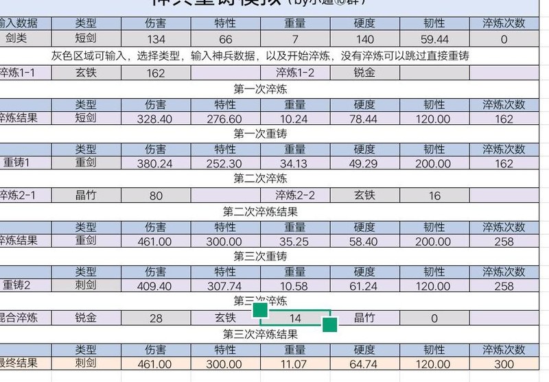 在当前淬炼方案下,重剑阶段神兵已达到满伤,即便重剑伤害卡在461,重铸为刺剑后仍会回落至460。若想维持461伤害,需在满伤前转为刺剑,但这要求调整原有淬炼路径。由于更换方案较为繁琐,因此未作重新规划与计算。
