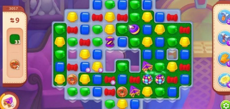 在第3057关中,玩家需要完成两个主要目标:清除四个甜甜圈并铺满草坪。通关的关键在于花盆的处理。游戏开始后,建议优先在花盆周围进行图块匹配,以启动花朵的生长过程。随着花朵逐步绽放,需持续在尚未完全开放的花朵附近进行元素配对,确保所有花朵顺利盛开。只有当区域内全部花朵都完全开放后,花盆才会彻底消失。这一步至关重要,因为花盆的存在限制了操作空间,一旦它们被清除,整个局面将变得开阔许多。此时不仅能够轻松制造各类强力道具,也能更高效地推进任务进度。因此,为了加快节奏,应尽可能在花盆旁快速匹配,并及时使用加速类辅助工具。花盆清空后,利用生成的道具组合应对剩余目标,消除甜甜圈和铺设草坪都将变得游刃有余,通关自然水到渠成。