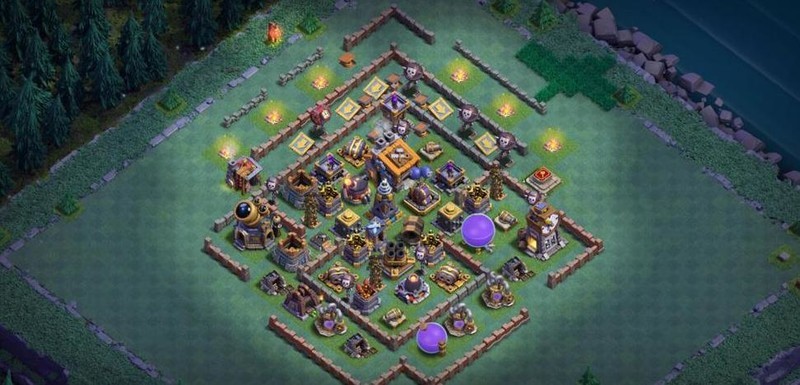 在城墙防御布局中,战术设计十分讲究。两侧下方会刻意留出部分入口作为诱敌之用,吸引对手从下路进攻,一旦深入中部,便会遭遇高血量与高输出建筑的强力压制。上方与下方区域间距较大,核心位置被明显拉远,整体结构紧凑且层次分明。这种布局目前广为流行,能有效阻碍敌方推进,使其即便选择单路强攻,也很难顺利拿下两星。
