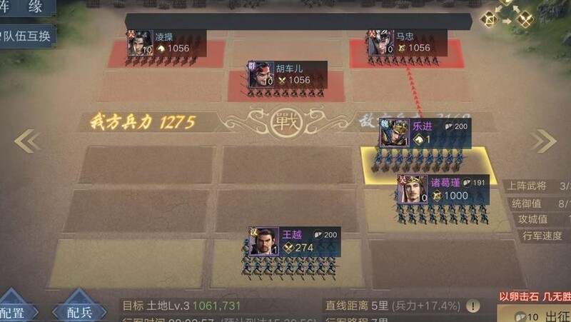 别小看王越、乐进和张燕这三位初始武将,前期搭配足以征服低级土地。待主公获得张昭或诸葛瑾后,可替换其中一人,形成枪兵、骑兵与弓兵的均衡阵容,非常适合初期征战与发展。
