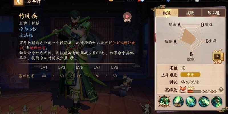 只要竹气穿命中目标,就能与弱势的侍类式神五五开,后期可考虑补一件防御装备提升生存能力。