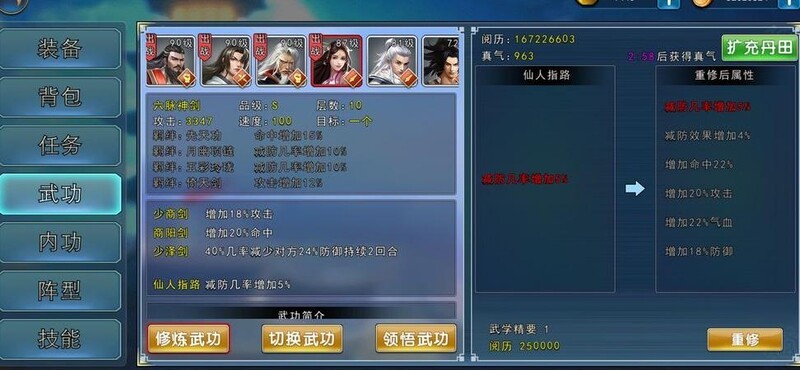 剑法武功包括六脉神剑、青玄剑法、灭绝剑法、玉女剑法和狂风剑法,均具减防效果,其余低于C级的未作考察。