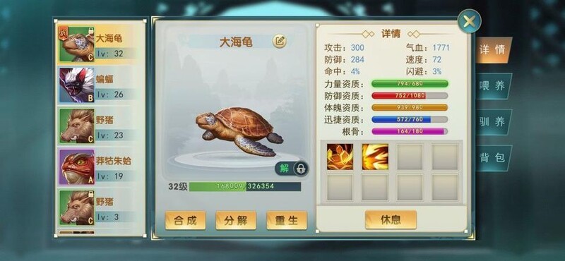 宠物推荐:大海龟、野猪,侧重输出能力。