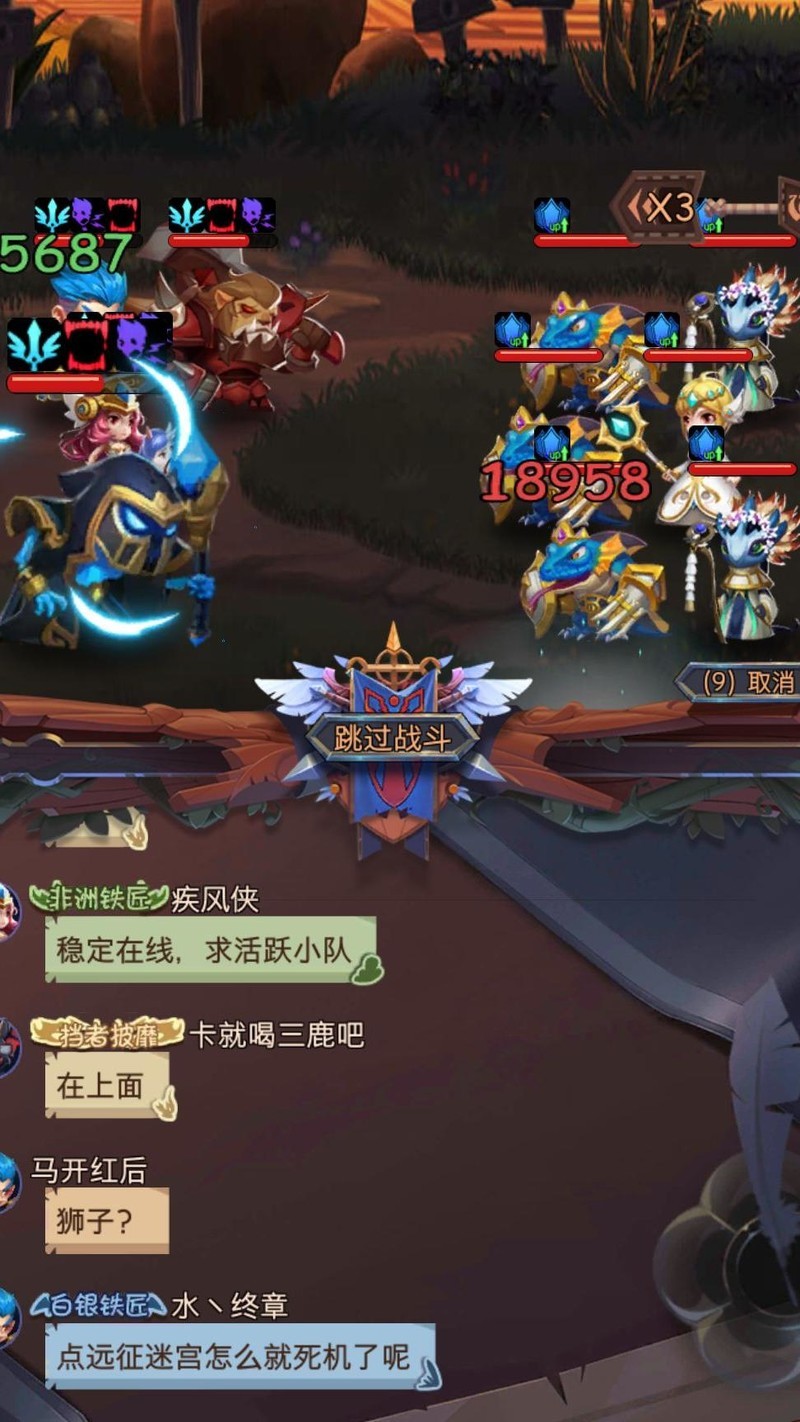 迷宫速通技巧:仅上阵三人(男主、正义之狮、魔导奶妈),系统按总战力匹配对手,此时18人队伍的总战力与你的三人相当,因此能轻松无伤通过关卡,效率极高,适合快速刷图。