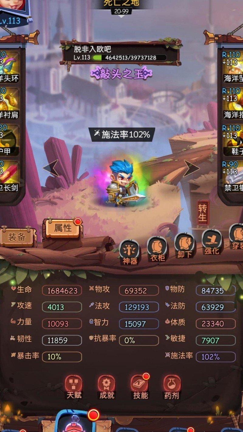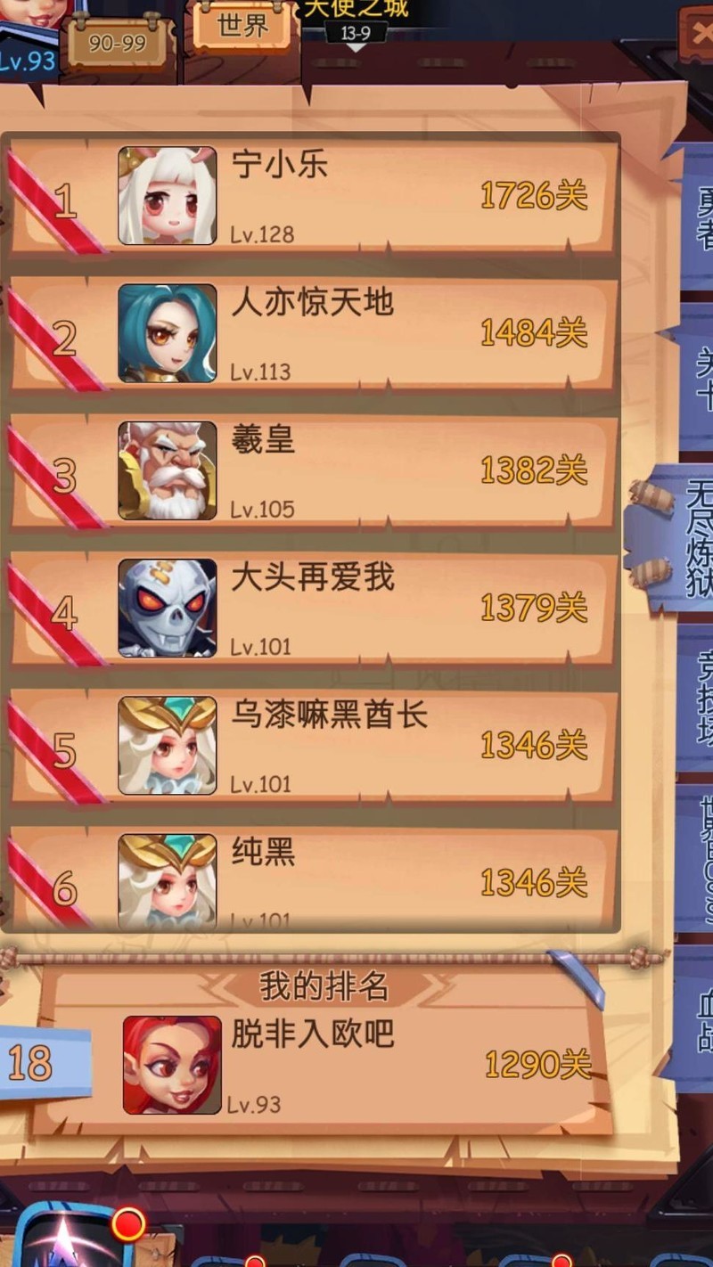 目前等级93级,80级时入手了两件比蒙套装,88级后替换为禁卫套,推图和无尽模式已接近瓶颈。整体来看,比蒙提升有限,核心战力突破仍在100级神器加成。若不急于推进图和无尽,不建议优先购买比蒙套装。