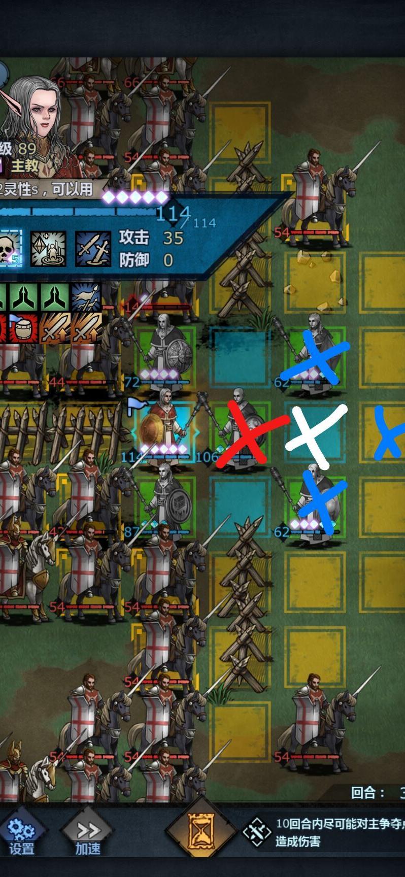 当红方主教治疗白方单位后,蓝方主教将恢复1点行动点,可借此机制快速累积行动资源。