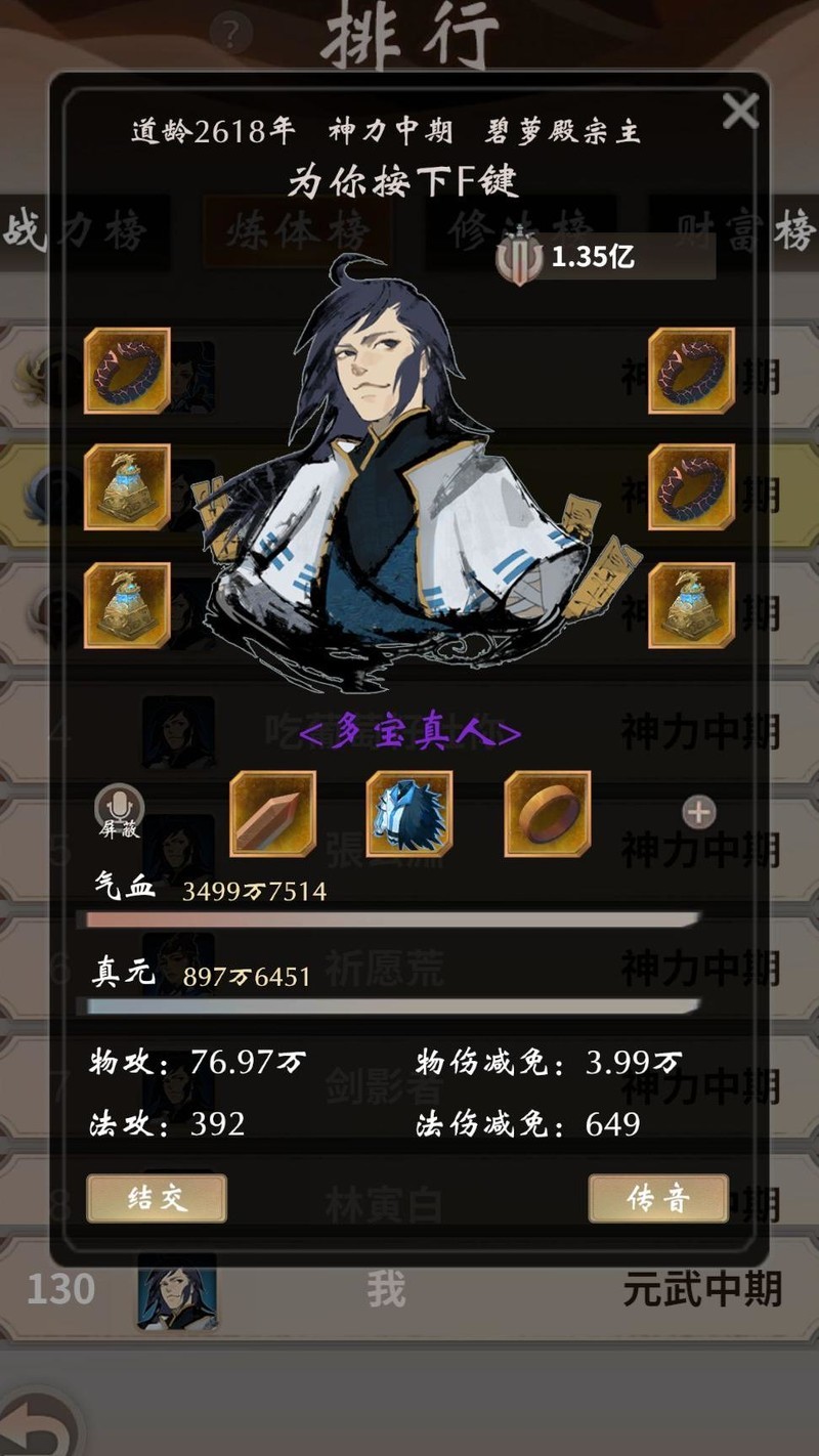 游戏中以五色标识品质:白色为下品,绿色为中品,蓝色为上品,紫色为极品,橙色为仙品。炼制出橙色品质物品或法宝时,系统将发布公告,玩家可选择在头像处屏蔽该提示。