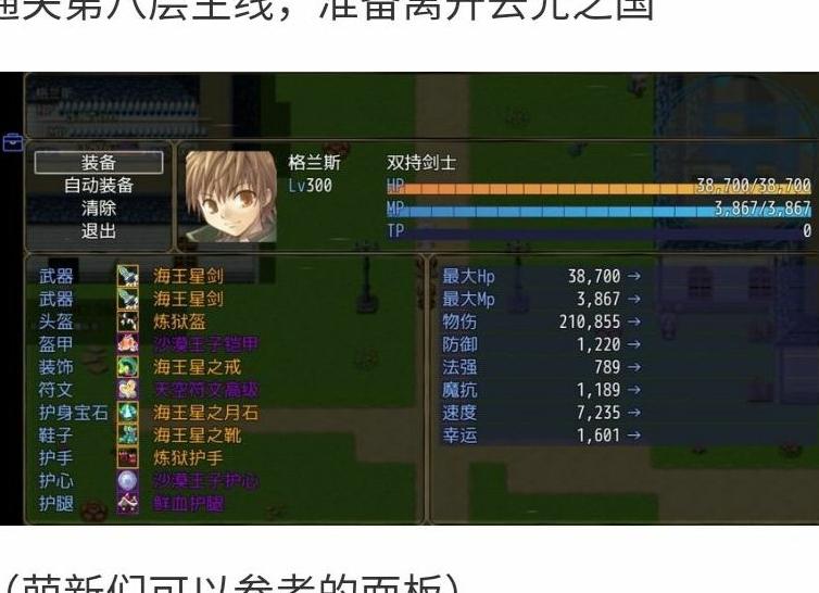 以下是通往光之国前第八层的基础属性面板,达到此水平后,后续战斗将不再吃力。
