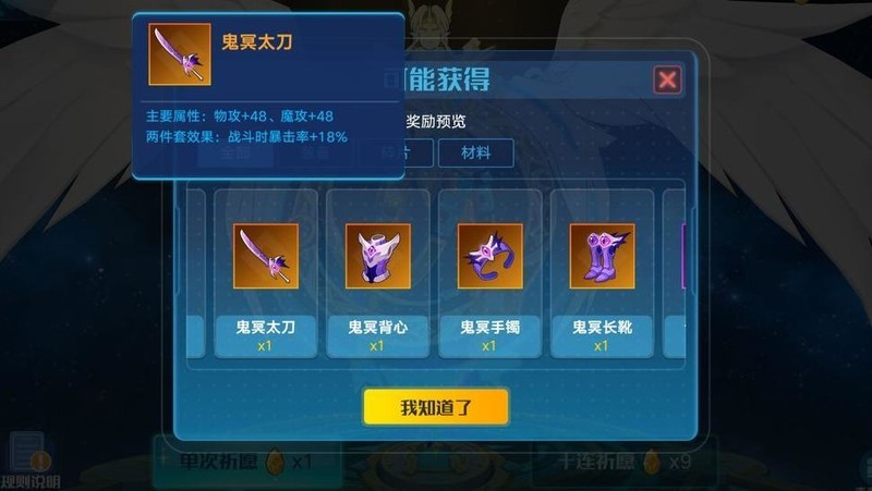 四件橙色装备,含火鬼水木属性,两件套效果可叠加两次。