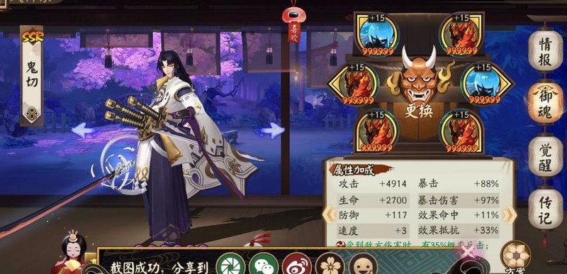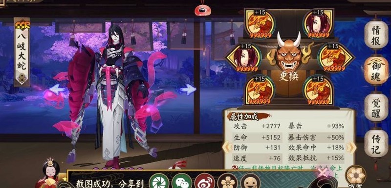 推荐御魂搭配:狰或针女,攻击攻击暴击