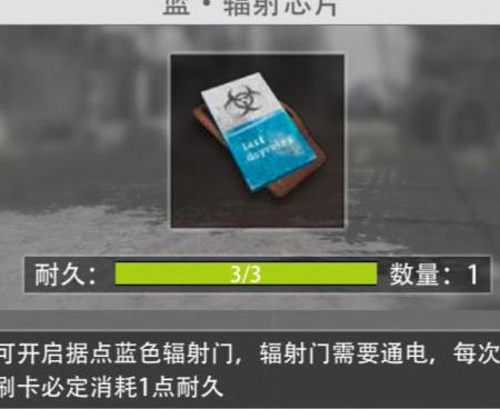 蓝色辐射芯片刷新于卡房内及各物资点楼梯的屋顶,绿色辐射芯片则在相同区域出现。