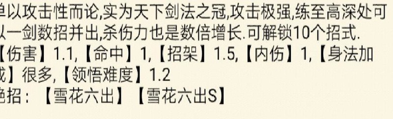 雪山剑法达到300级后,可前往天池寻找怪侠接取任务,习得雪花六出S,此招可比原版多释放一道剑气,威力更甚。