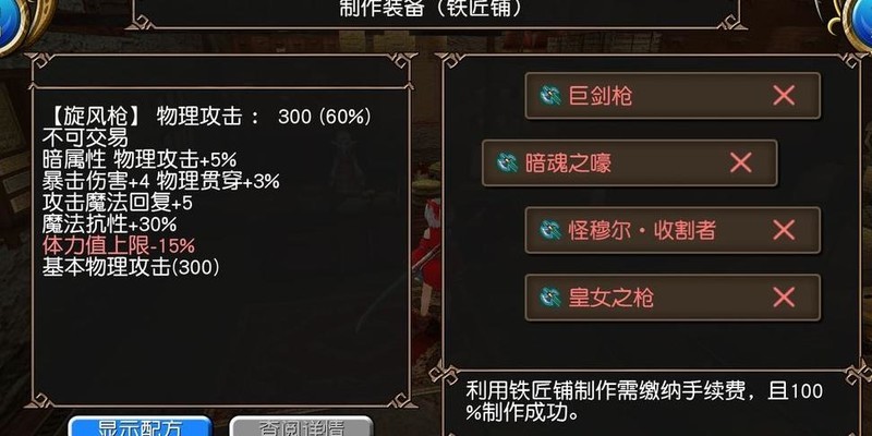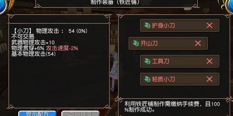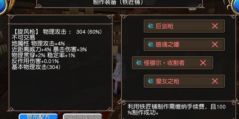 装备推荐分为两种:一种是铁匠铺材料容易获取的低配方案,另一种是材料较难刷的高配选择。具体属性不再赘述,详见配图。实在找不到更多搭配,已尽力翻遍铁匠铺资源。