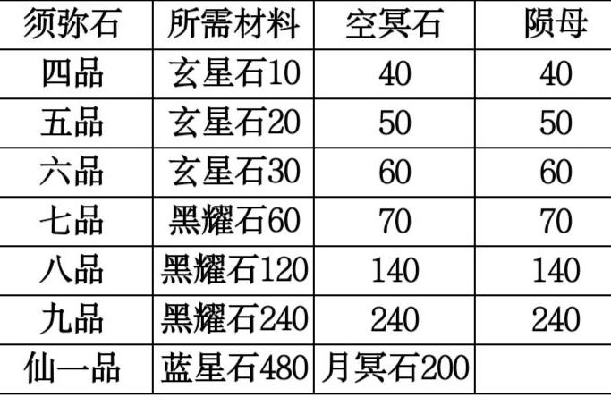 四至六品须弥石所需玄星材料较少,前期刷图即可满足。