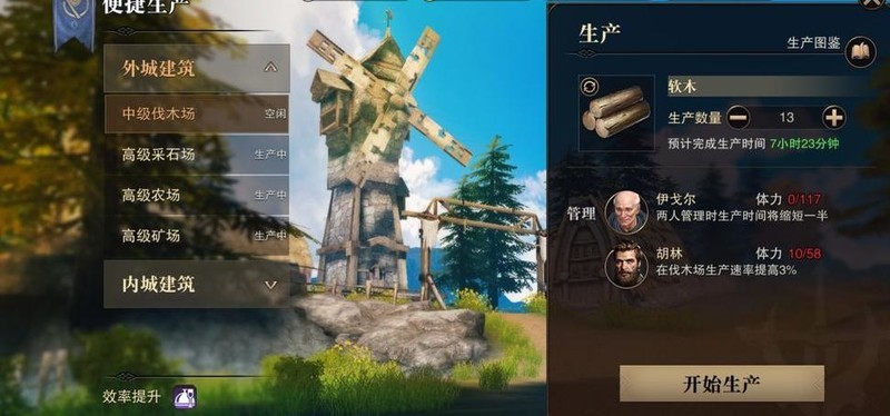 内城建筑要求如下:工匠坊升至2级,铁匠坊达到1级,炼金坊升到2级,酒馆尽量建造(后续将说明其功能)。完成上述三项内城建筑及四个外城设施后,即可着手制作家具以赚取金币。