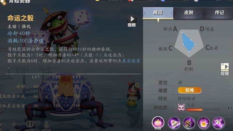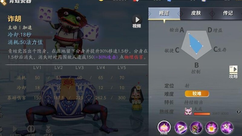 青蛙瓷器定位为射手,应走下路发育。虽具备隐身、控制与真实伤害能力,但实际表现过于依赖运气,发挥不稳定。