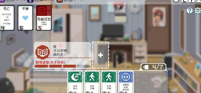 提前打出平静牌以抵消剧情牌的负面效果,留意死亡牌的触发时机,并在倒数第二回合精准使用信心牌进行抵消。