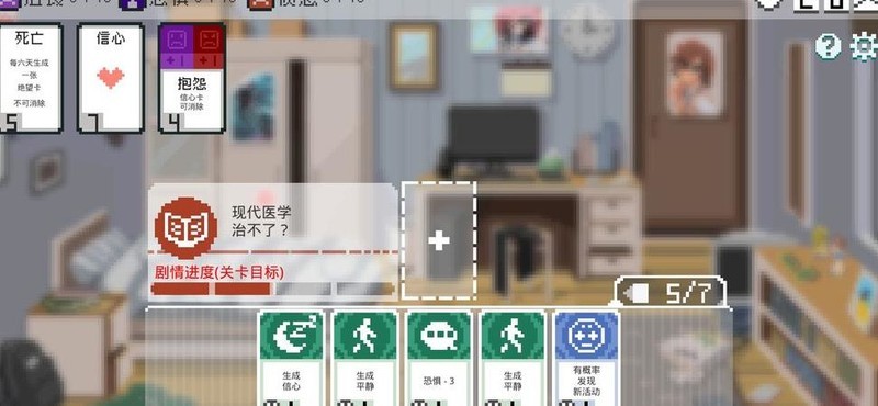 第三张剧情卡会触发死亡牌,运气不佳时勿久留手牌,应迅速通过以降低风险。