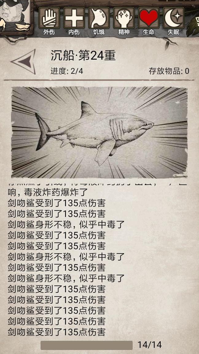 沉船共24重,每重4层,其中两层为箱子,两层为鲨鱼。首两重每层鲨鱼群为3只,末两重增至14只,每隔两重鲨鱼数量增加1只,同时鲨鱼血量也随之提升。