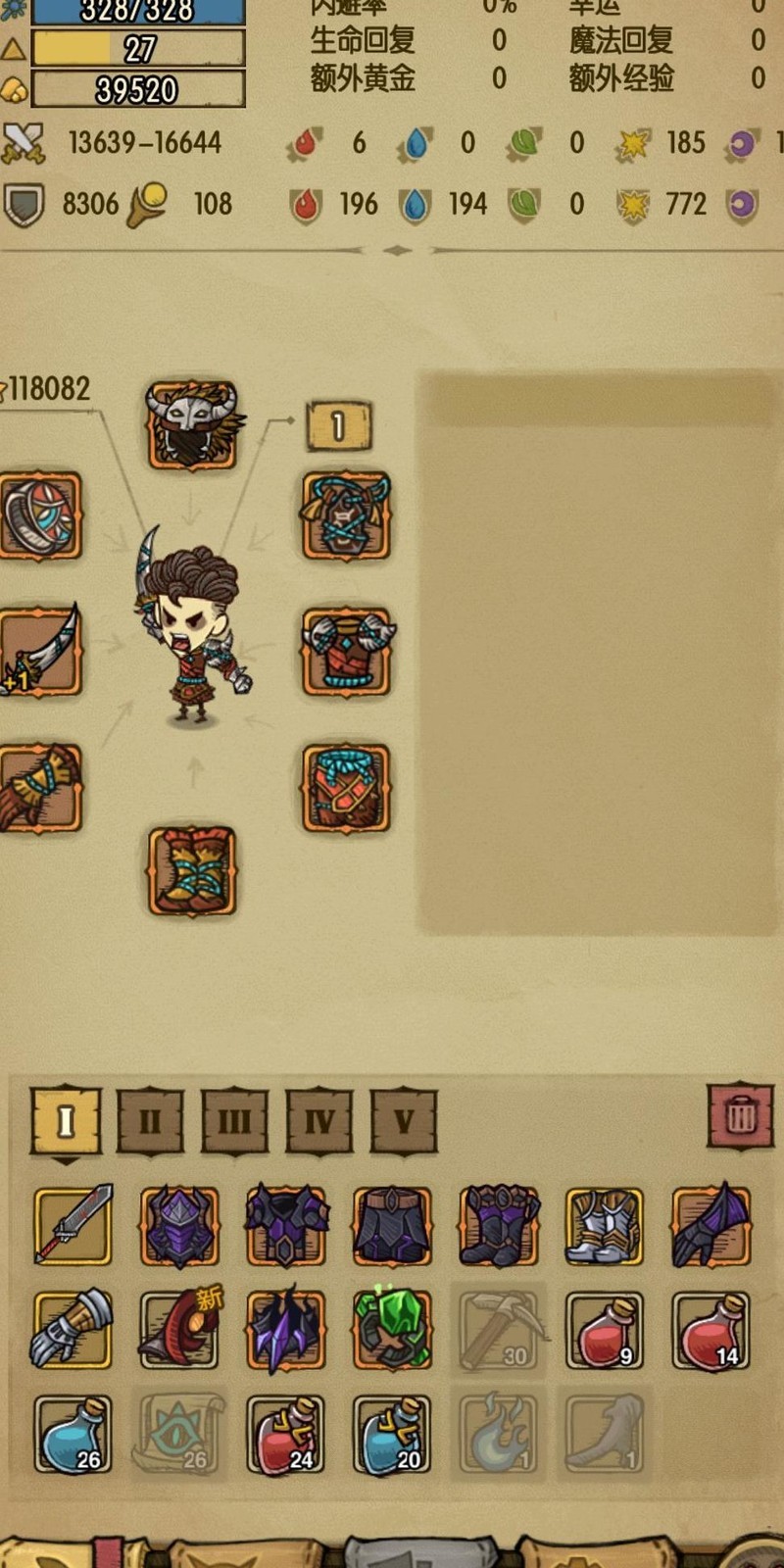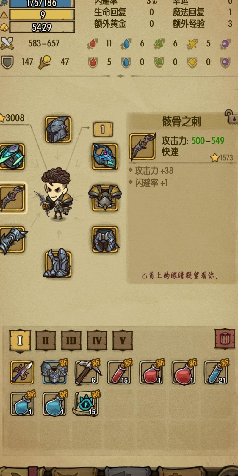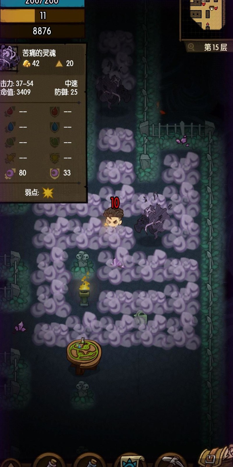 拾取骸骨之刺后,清理11至15层所有怪物(避开宝箱怪与苦痛灵魂,减少中毒),完成后状态所示。
