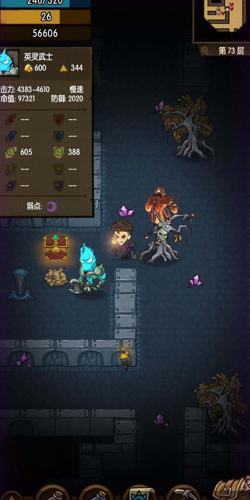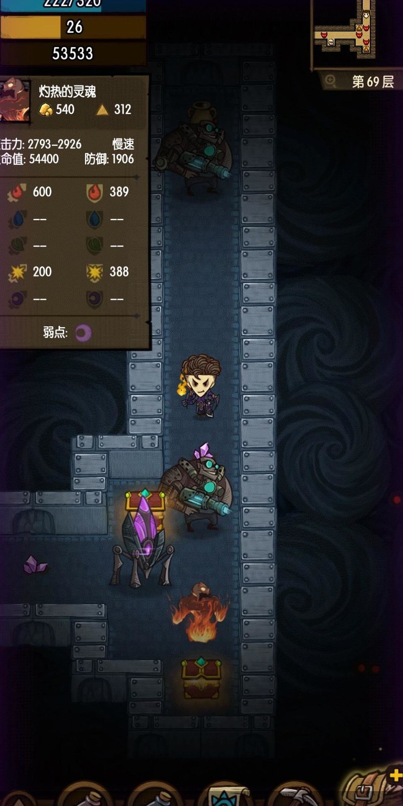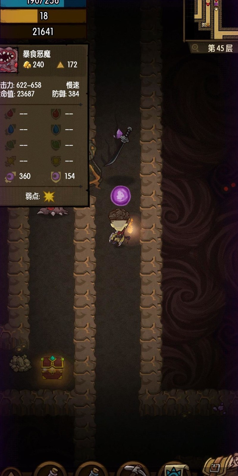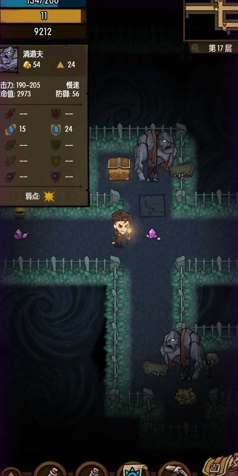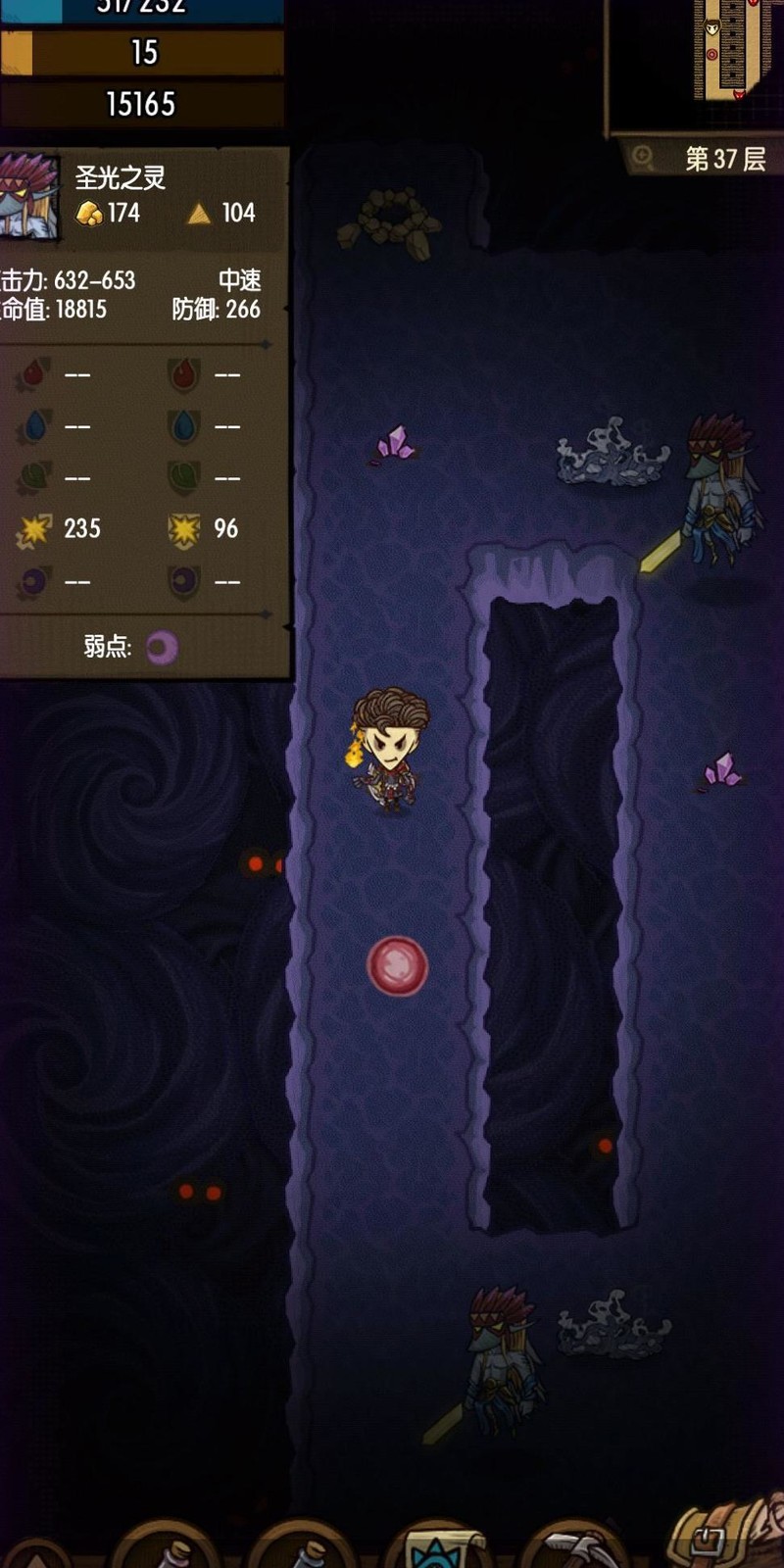 清理16至20层除清道夫、苦痛灵魂和宝箱怪外的所有敌人,清理完毕后状态所示。