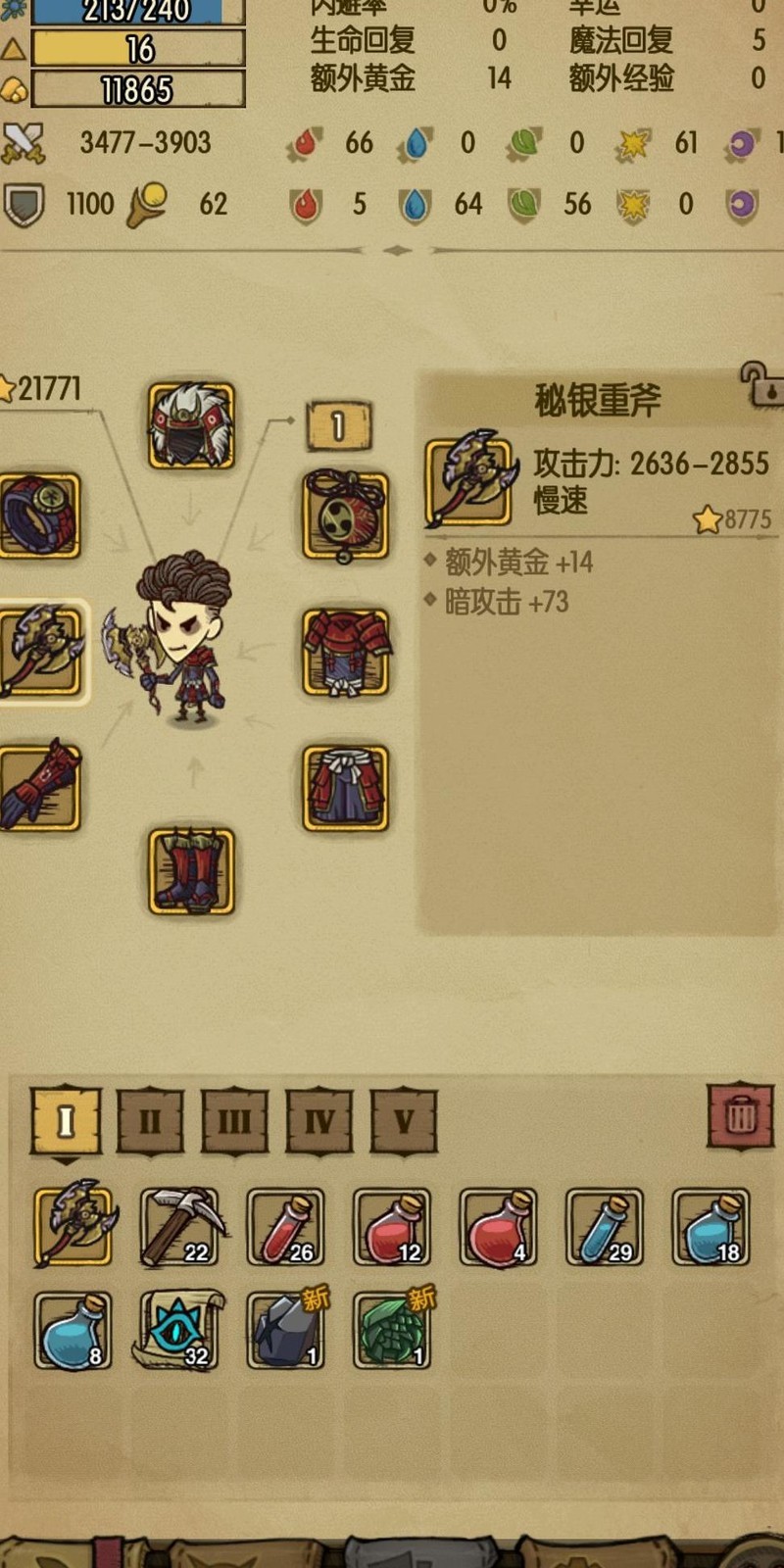 前往41层后寻找金色宝箱,取出其中的秘银重斧并装备。从该层开始,不再掉落小型红蓝药水,转而更可能获得中型或大型的红蓝药水。建议在41至55层之间尽可能开启所有箱子和罐子,即使有怪物阻挡也不必回避,以减少毒雾和陷阱的持续伤害,遇到优质装备立即更换使用。