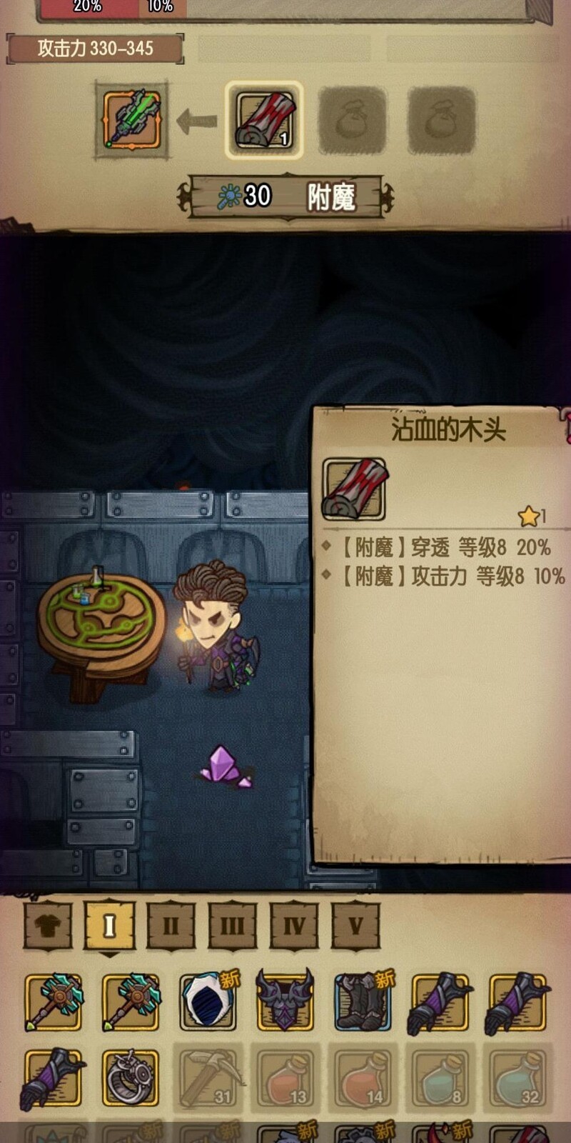 61至70层应优先开启罐子并刷取骸骨堆,目标是获取沾血的木头附魔材料。建议刷够15个,主要用于附魔穿透属性,若出攻击属性则保留,另换装备继续附魔。穿透附魔可提供约570点穿透,攻击附魔也能带来至少330点攻击力,两种属性均具有较高价值,合理分配可显著提升战力。