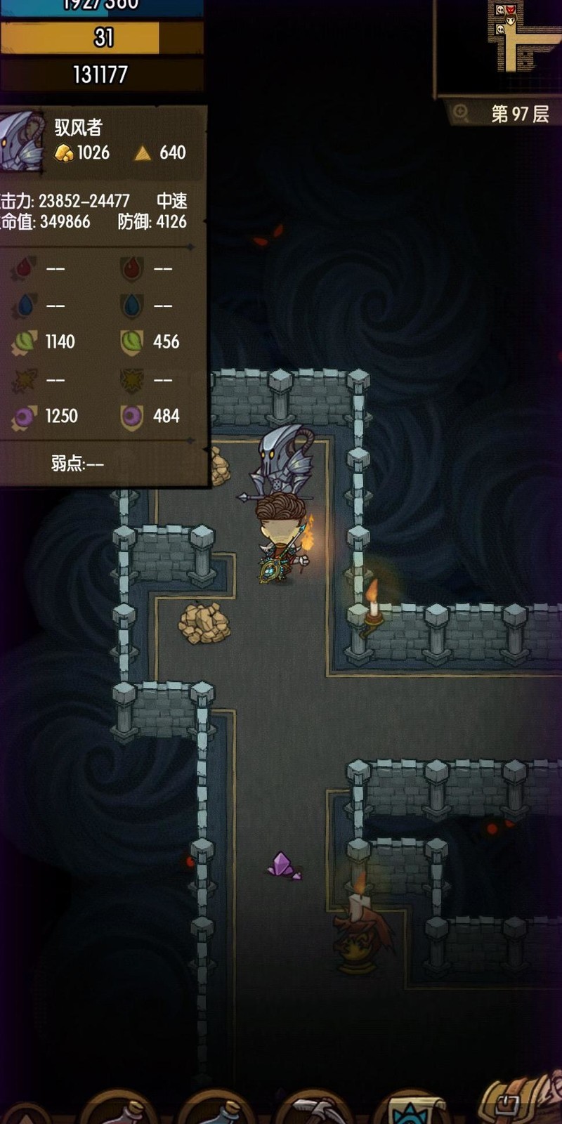 97层有驭风者,属性极强,尽量避开,否则必败。