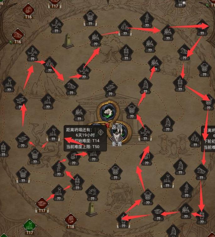 不朽之旅万神宝库高难挑战,欧皇附体5区实战路线规划分享!从左下祭坛出发,逆时针推进,巧妙堵路,冲击T50极限。