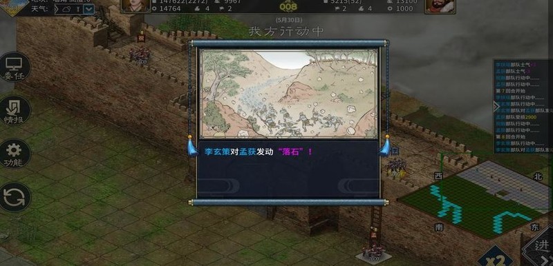 经历数轮激战,虽歼敌众多,然敌势仍盛于我。此时可施用两种妙策:一为落石,二为火攻,皆能出奇制胜,扭转战局。