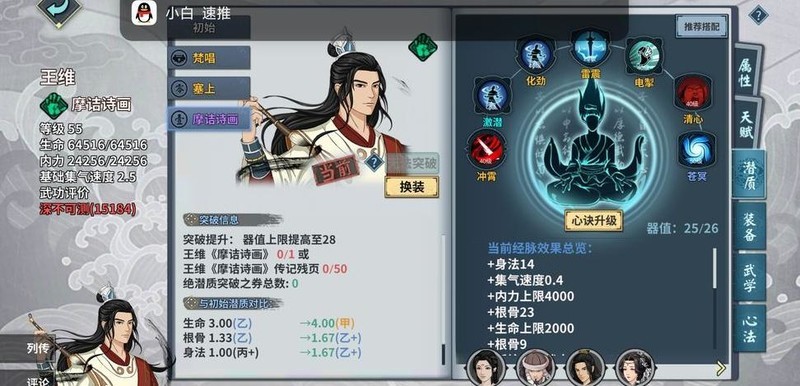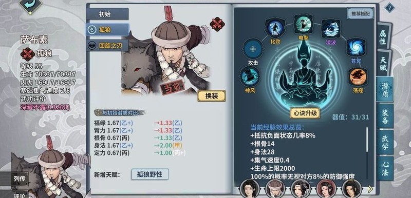 主洗髓可提升贪狼的生存能力,特定场景下效果显著,还能腾出大藏经供队友使用,增强团队辅助。建议各洗一次暴击率与命中。但洗髓怒气消耗较高,需搭配替换技能(1)或(2)使用,放弃天风后,命中与暴击率略低于大藏经配置。