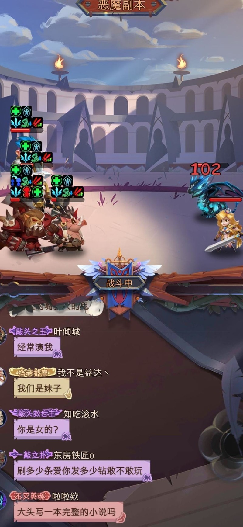 之所以只上阵5名角色,是为了避免血量较低的单位过早阵亡。通过缩小敌方开局双元素攻击可命中的目标范围,尽可能让技能落在血量较高的血狮身上,同时防止其他角色被击中后触发拉斐尔的无敌机制。虽然本关已通过,具体战斗细节记忆略有模糊,但整体思路如此。此关在恶魔14层中难度排第二,实际挑战并不算特别困难,可依此策略尝试应对。