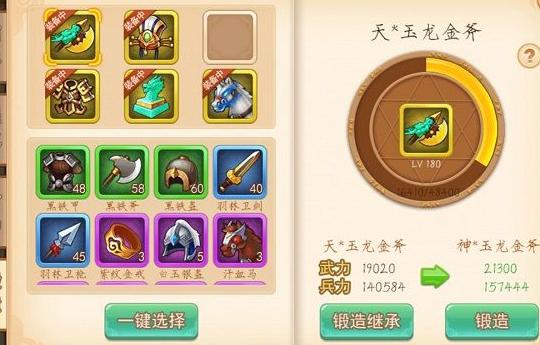 目前锻造等级分为普通、人、地、天、神、仙、圣,所需锻造值依次为400、4000、16400、48400、9万和14.6万。绿色、蓝色、紫色装备分别提供10、30、100点锻造值。是否投入大量时间取决于个人安排。游戏前中期建议挑战麒麟获取资源,同时推荐使用夏侯惇作为神兽专属武将,其技能可实现一击必杀,无需补刀,效率极高。