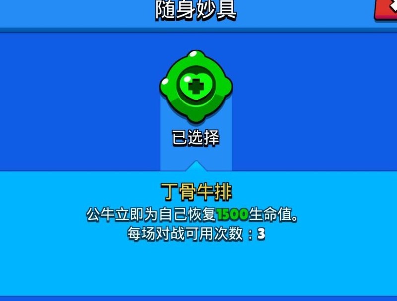 受影响的主要是随身妙具中的主动防身技能,使公牛更难贴近对手。由于公牛不像雪莉那样具备近身突进的随身妙具,而其超级技能本身已带有冲锋特性,因此不宜再强化此类能力。最终选择赋予其具备回血效果的随身妙具,在生命值较低时发挥作用。不过实际效果仍取决于战场环境和使用时机,在多数情况下带来的优势较为有限,影响程度因局势而异,并非决定性因素。