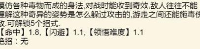五毒拳法各项属性平平,但其烦人之处在于命中后可能附加中毒5效果,且该状态可叠加,持续伤害令人头疼。