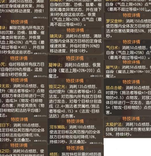 装备打造过程中,特技仅可能出现在武器、头盔、衣服、腰带和鞋子五个部位,而所有部位均有可能出现特效。目前特技与特效的产出概率相对较低。角色达到50级后,系统将赠送一双具备实用加血特技的鞋子。装备附带特技后,相关信息可在特技配置界面查看。每次使用特技后需冷却6秒方可再次释放,不同特技消耗的愤怒值各异。战斗中每6秒自动恢复1点愤怒值,脱离战斗后最多保留70点。此外,特定法宝与药品可实现愤怒值的即时回复。