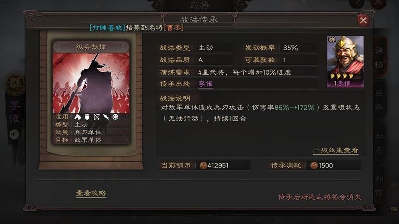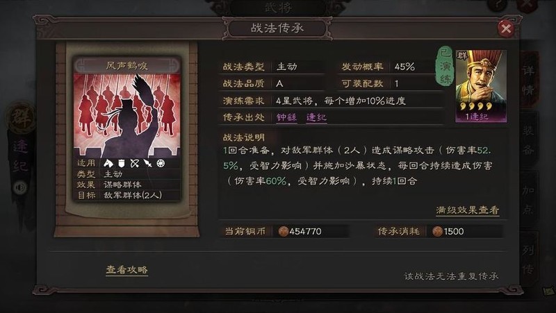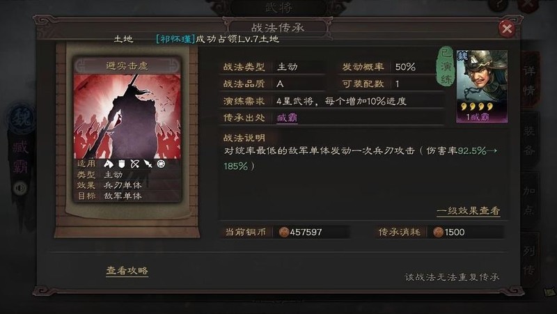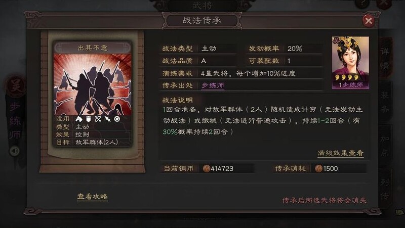 突击战法释放概率40%,可降低敌方150统率并使其沉默一回合。在盛气凌人盛行的环境中,此类战法显得黯然失色。