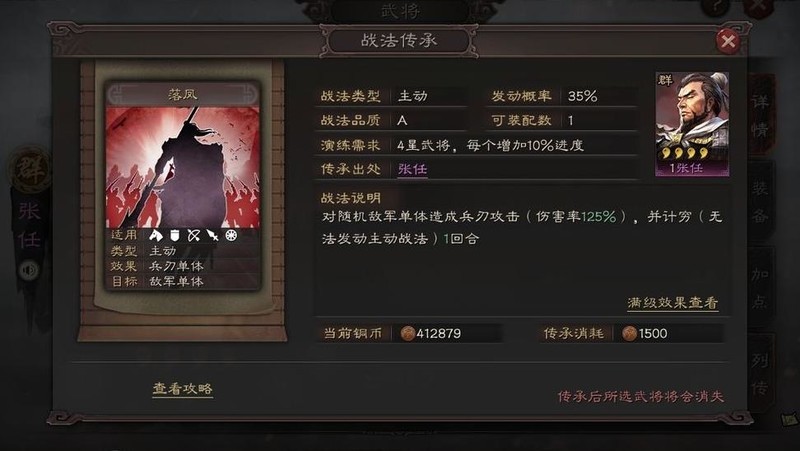 该技能由张任施展,有35%几率使目标单体沉默一回合,单次伤害可达250%。实战中释放频率较高,通常在四回合内可发动两次。